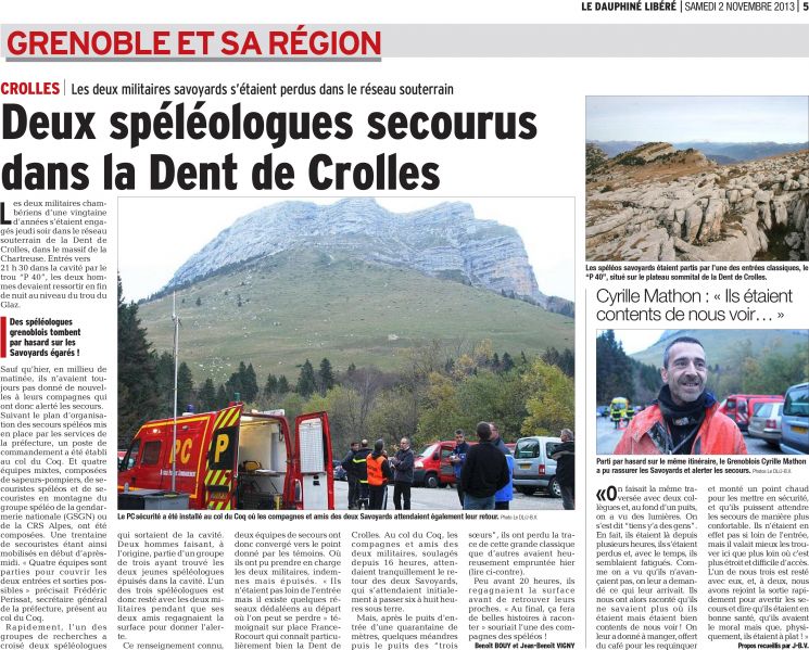 Traversée P40-Trou du Glaz - 01 novembre 2013 - Article de presse - Le Dauphiné Libéré